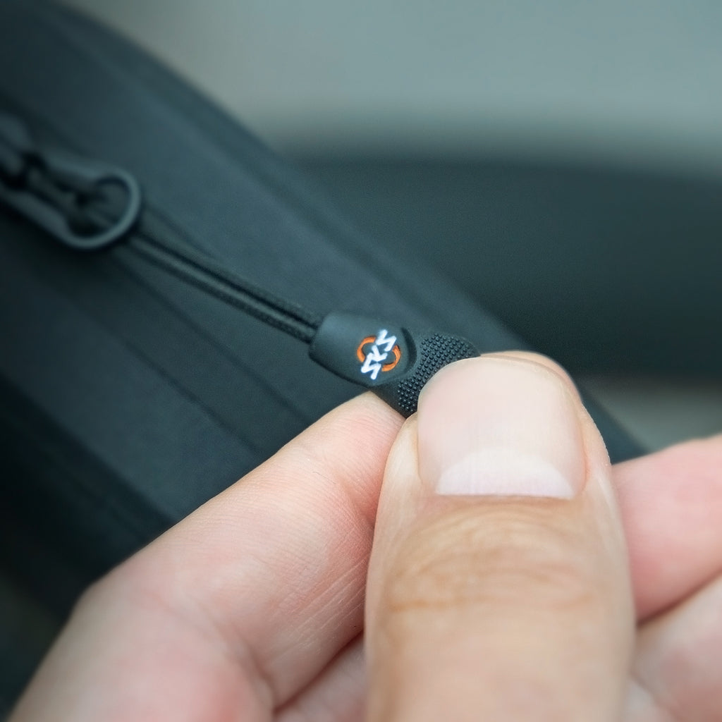 Der Easyzip-Reißverschluss kann einhändig während der Fahrt bedient werden, zwei Mesh-Innentaschen bringen Ordnung ins Innere. Eine Kabeldurchführung an der Vorderseite erleichtert das Aufladen des Handys während der Fahrt. Befestigt wird die Fahrradtasche entweder mit rutschhemmenden Klettstraps oder mit Schrauben am Oberrohr (Schraubenadapter inklusive). Die Klettstraps mit rahmendschonender Tube-Protection lassen sich individuell kürzen und bei Bedarf austauschen.