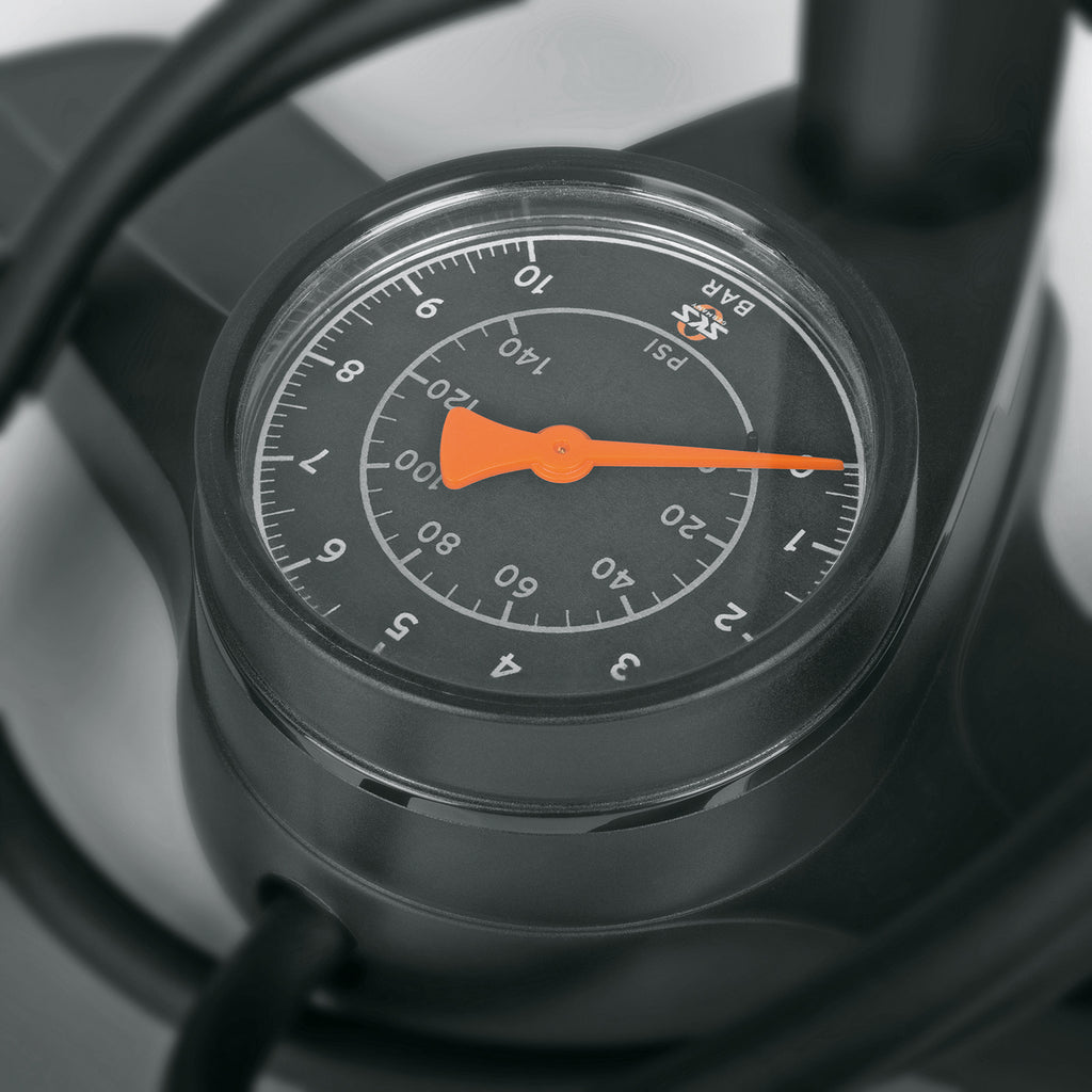 Die SKS Standpumpe AIRLITE kombiniert hochwertige Materialien mit durchdachter Funktionalität. Das große Präzisionsmanometer ermöglicht eine optimale Ablesbarkeit des Reifendrucks bis 10 bar. Mit ihrem Stahlrohr und dem robusten Kunststoff-Fuß garantiert die Standpumpe eine hohe Stabilität beim Pumpen.