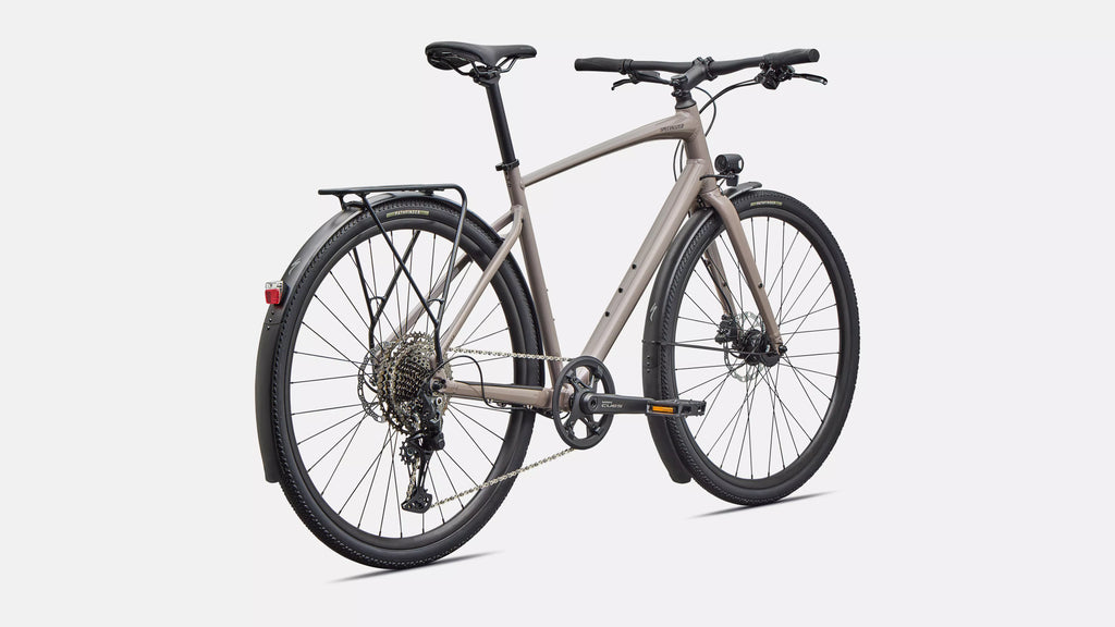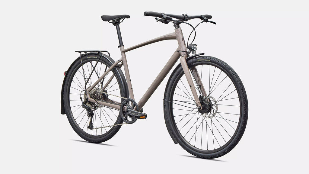 Specialized A1 Premium Aluminum, Fitness Geometry, butted tubing, internal cable routing, flat-mount disc, quick-release, Plug + Play rack/fender mounts